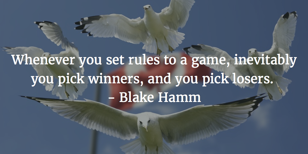 Whenever you set rules to a game, inevitably you pick winners, and you pick losers. If you are a player within that game, you want the rules to make you a winner. After all, it is only a matter of rational, self-interest. This is why electoral reform rarely happens in democracies. The only players with the power to change the rules, are the ones who won on the old ones. Not much incentive to change the very system that just elected you.