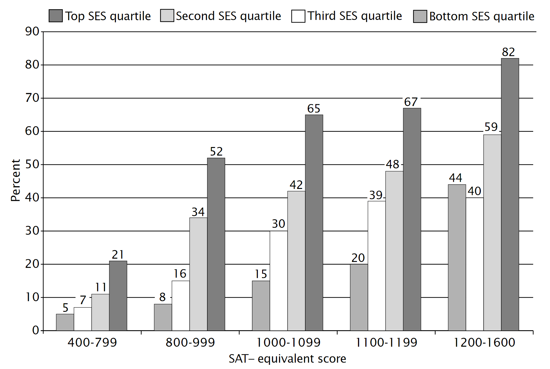 Figure 3: Graduation Rates by Socioeconomic Status (SES) and SAT-equivalent Score (percentage of initial attendees)