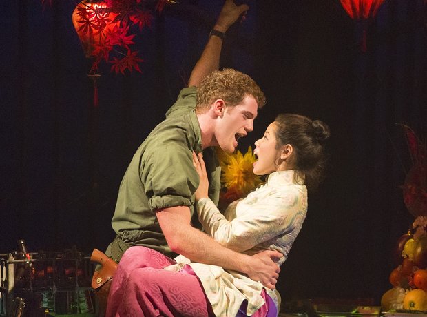 This Miss Saigon spares no expense — the helicopter is there, as are the showgirls — but ultimately succeeds thanks to bold, committed performances from Eva Noblezada (Kim) and Alistair Brammer (Chris, the shell-shocked GI who falls in love with her in “The Last Night of the World”. Kim bears Chris a son, but by that point the latter has returned to America and attempted to start life anew, married and burdened with PTSD. The desperate decadence of Saigon is masterminded by “The Engineer” (an engaging Jon Jon Briones, whose “American Dream” has never seemed more ironic). Rachelle Ann Go is also excellent as Gigi, a veteran stripper, and her duet with Kim — “The Movie in My Mind,” describing the ladies’ attempts to block everything out — is among the best parts of the score. Noblezada concludes the first act with a moving, “I’d Give My Life For You,” solidifying her commitment to her new son.